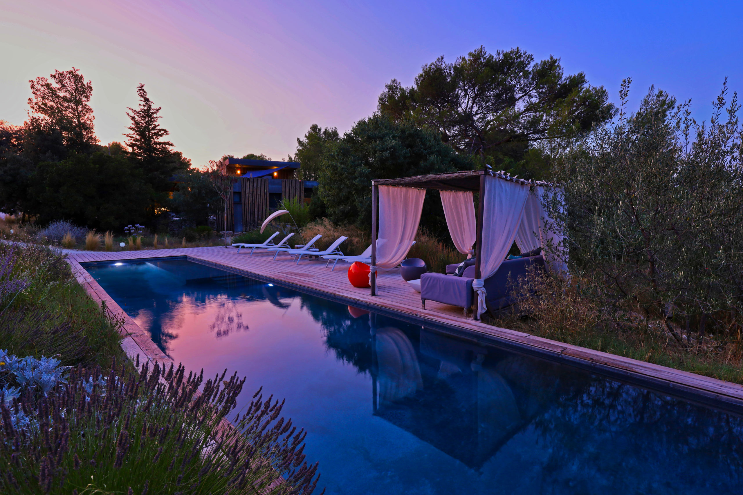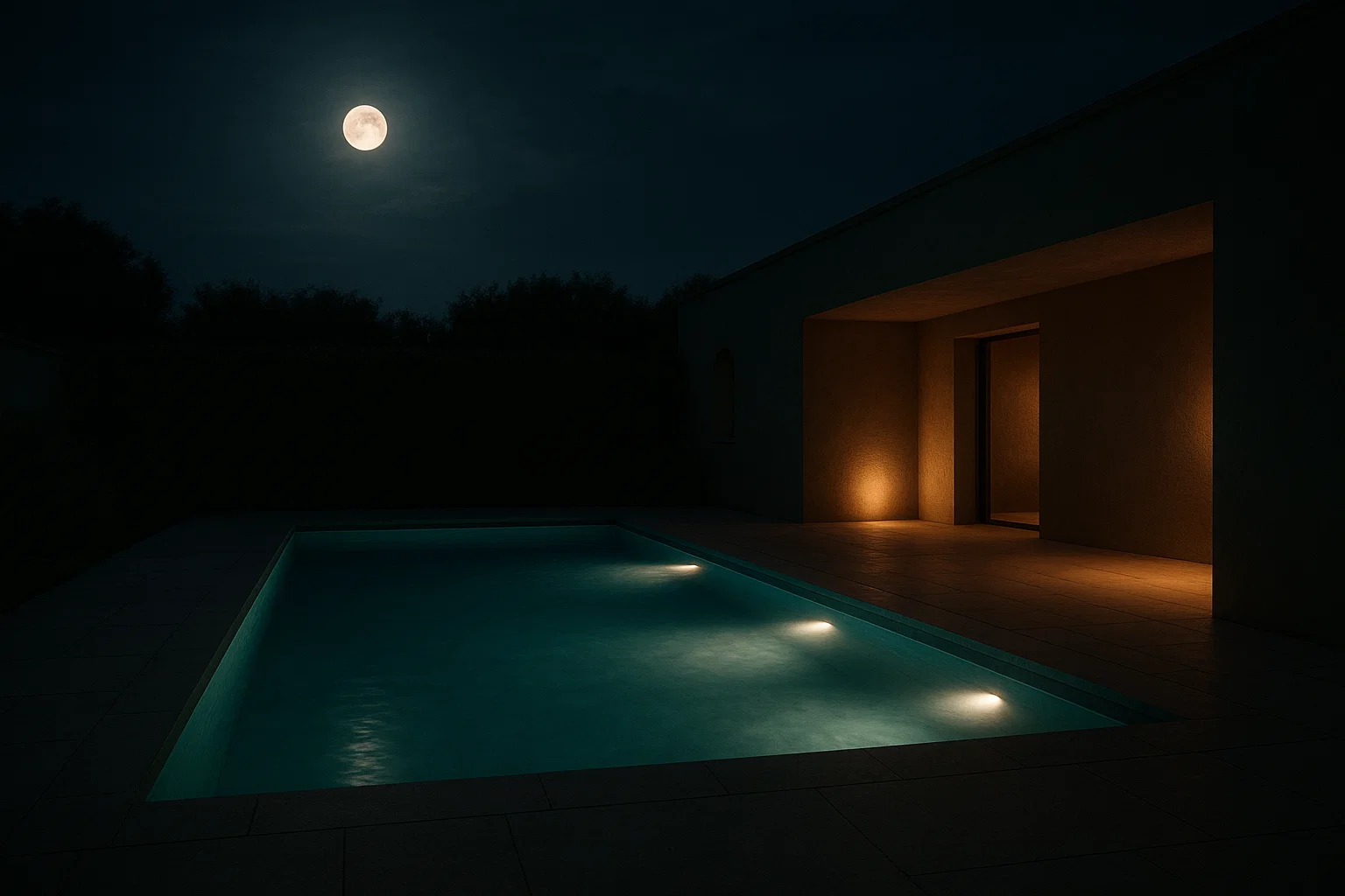 Des lignes douces, un minimalisme lunaire, des ambiances feutrées. Une invitation à la contemplation, où la piscine devient silence et lumière.